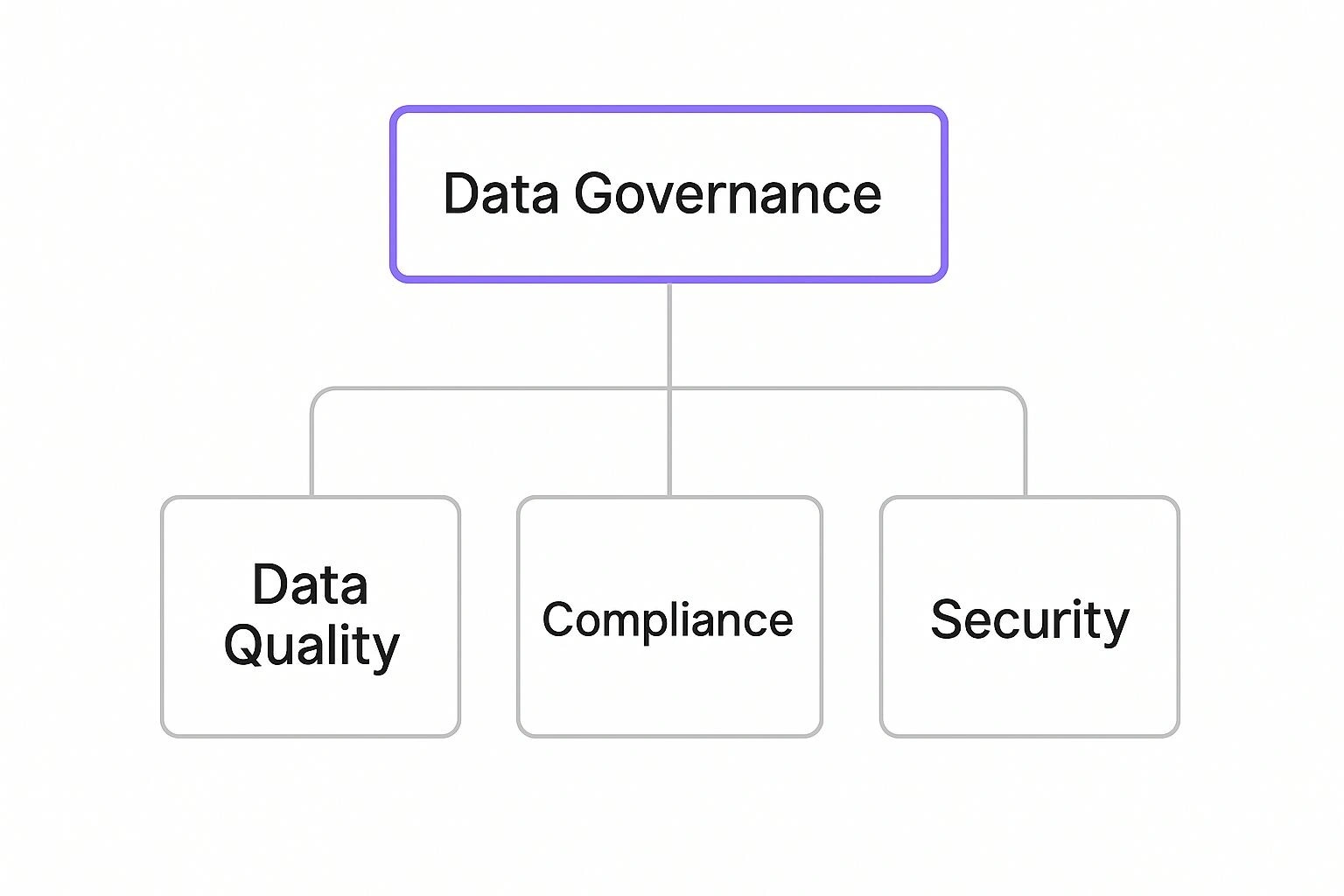 This diagram shows how data quality, compliance, and security are fundamental, interconnected outcomes of a strong data governance program.